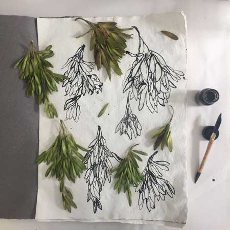 Colour is a large emphasis in my practice. It is a way for me to visually convey my emotional responses to being immersed in landscape / plants, to highlight the interconnected cyclical exchange which feeds my being. Colour and light play are the basis of my observations expressed through sketch, paint and print studies – organically informing my work by evolving into experimental textural and painterly combined printmaking techniques such as linocut, collagraph and introducing encaustic wax monoprinting.