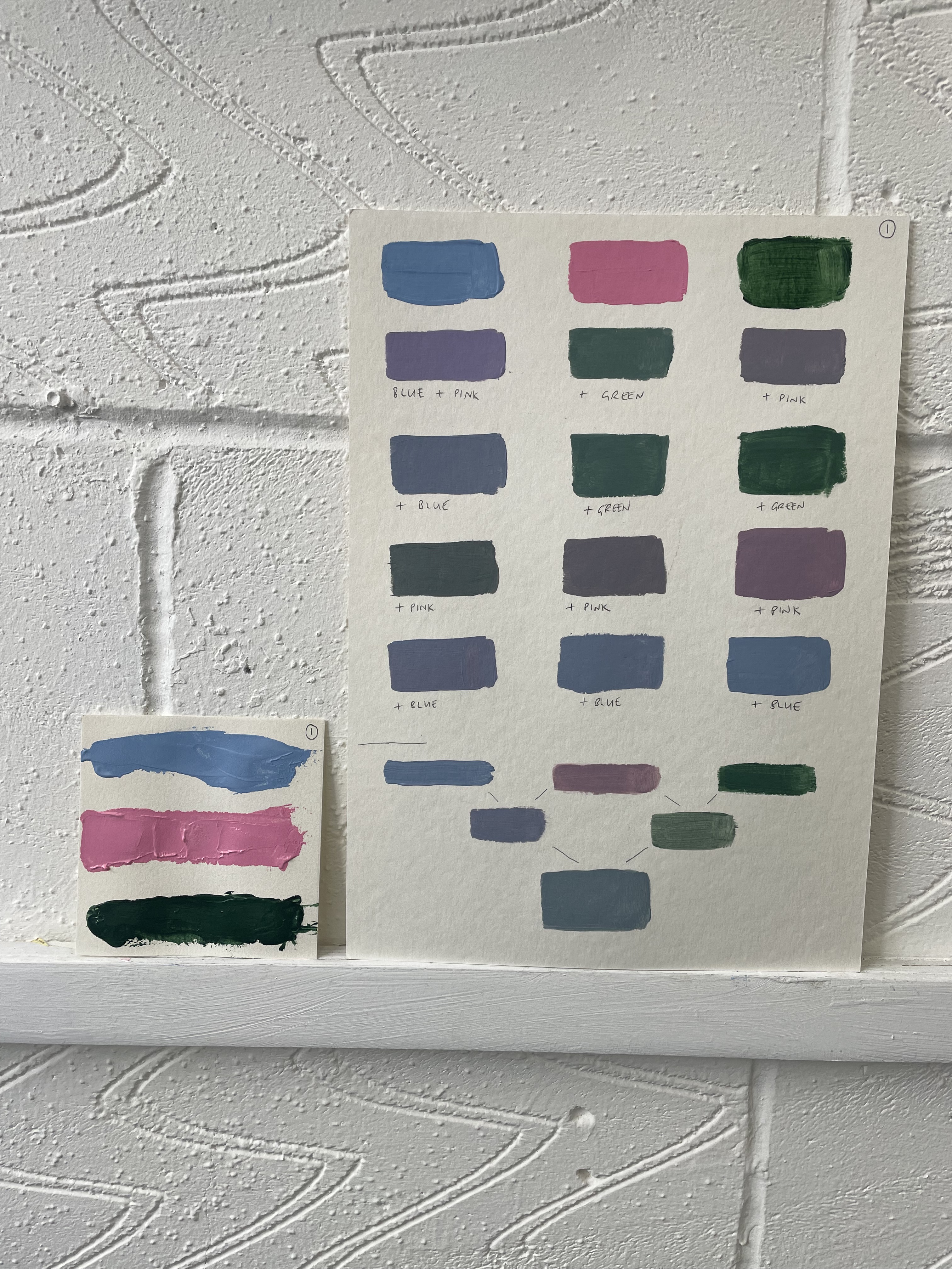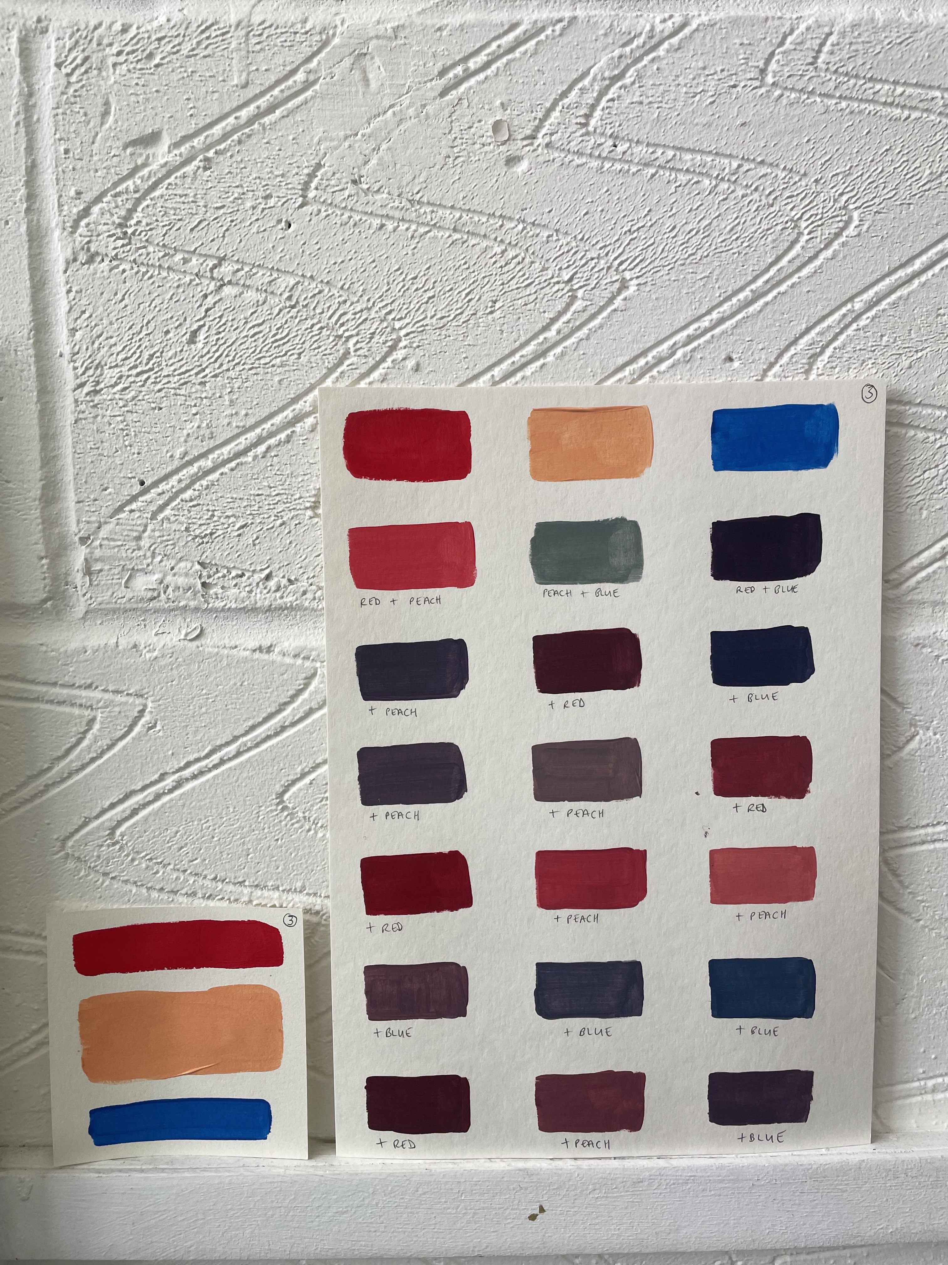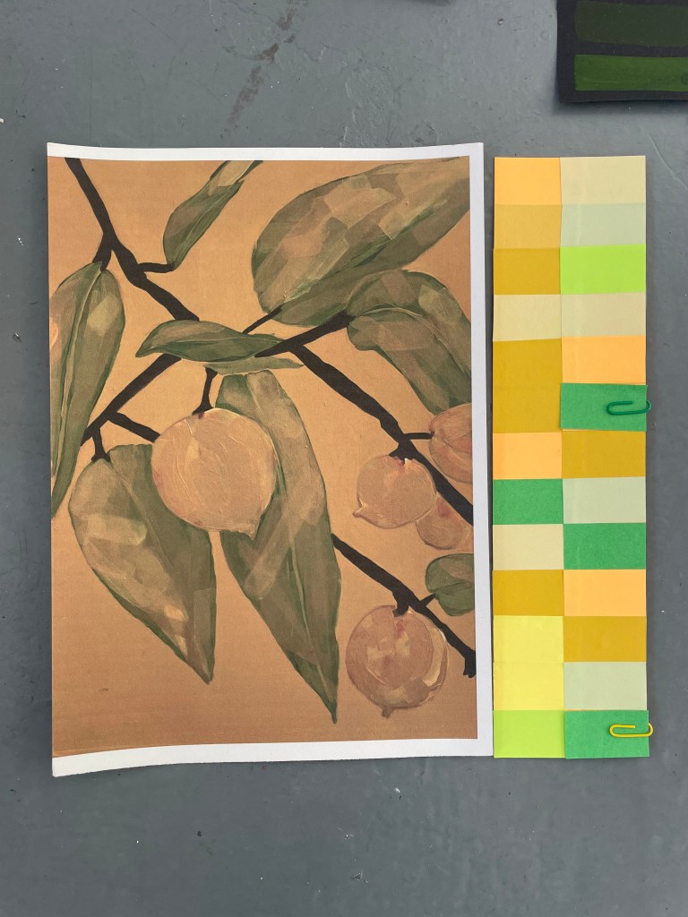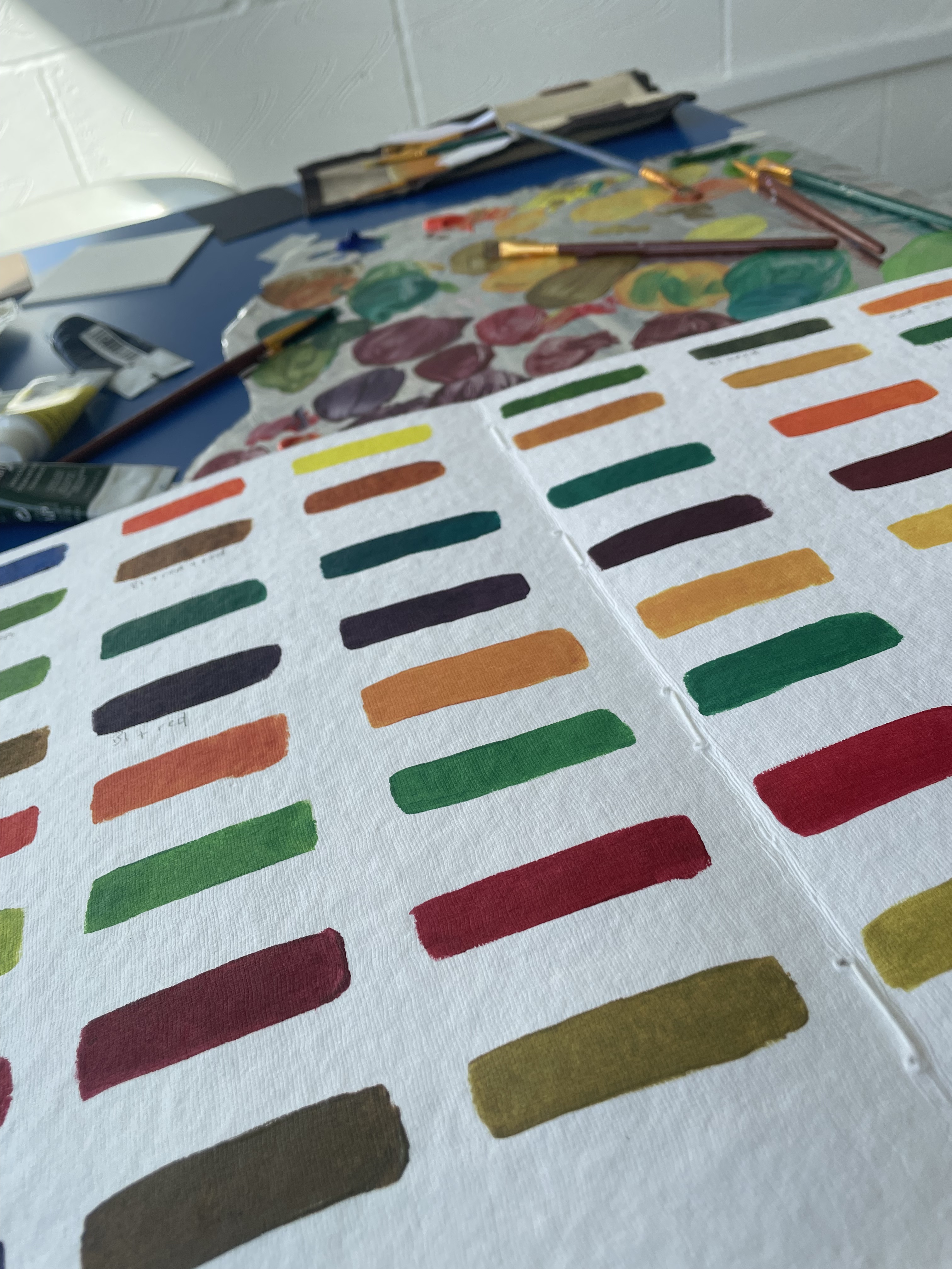 A studio staple in my practice is making colour as exercises that ease me out of a creative block or into exploring a particular palette range for a piece of work or as studies. Creating these swatches under different ‘conditions’, in an altogether different environment (both immediate and wider), with headspace being free to simply explore, was the beginning of creating work over the next few days that I didn’t know I had in me.