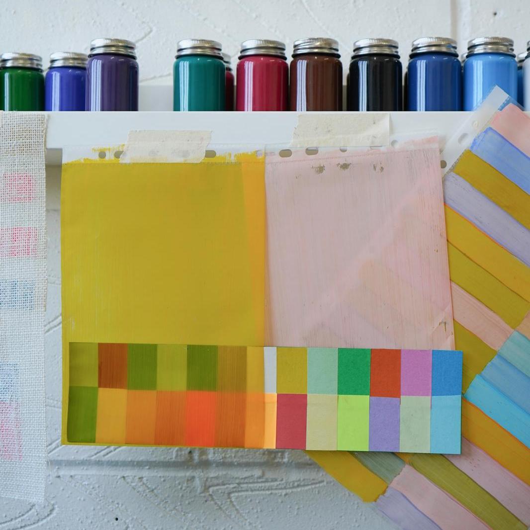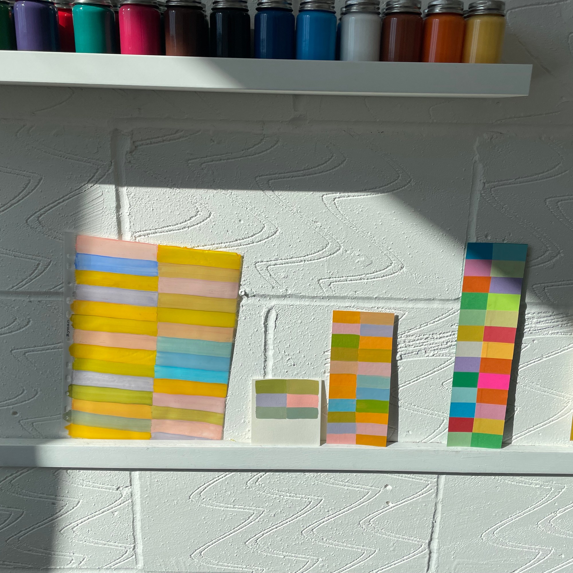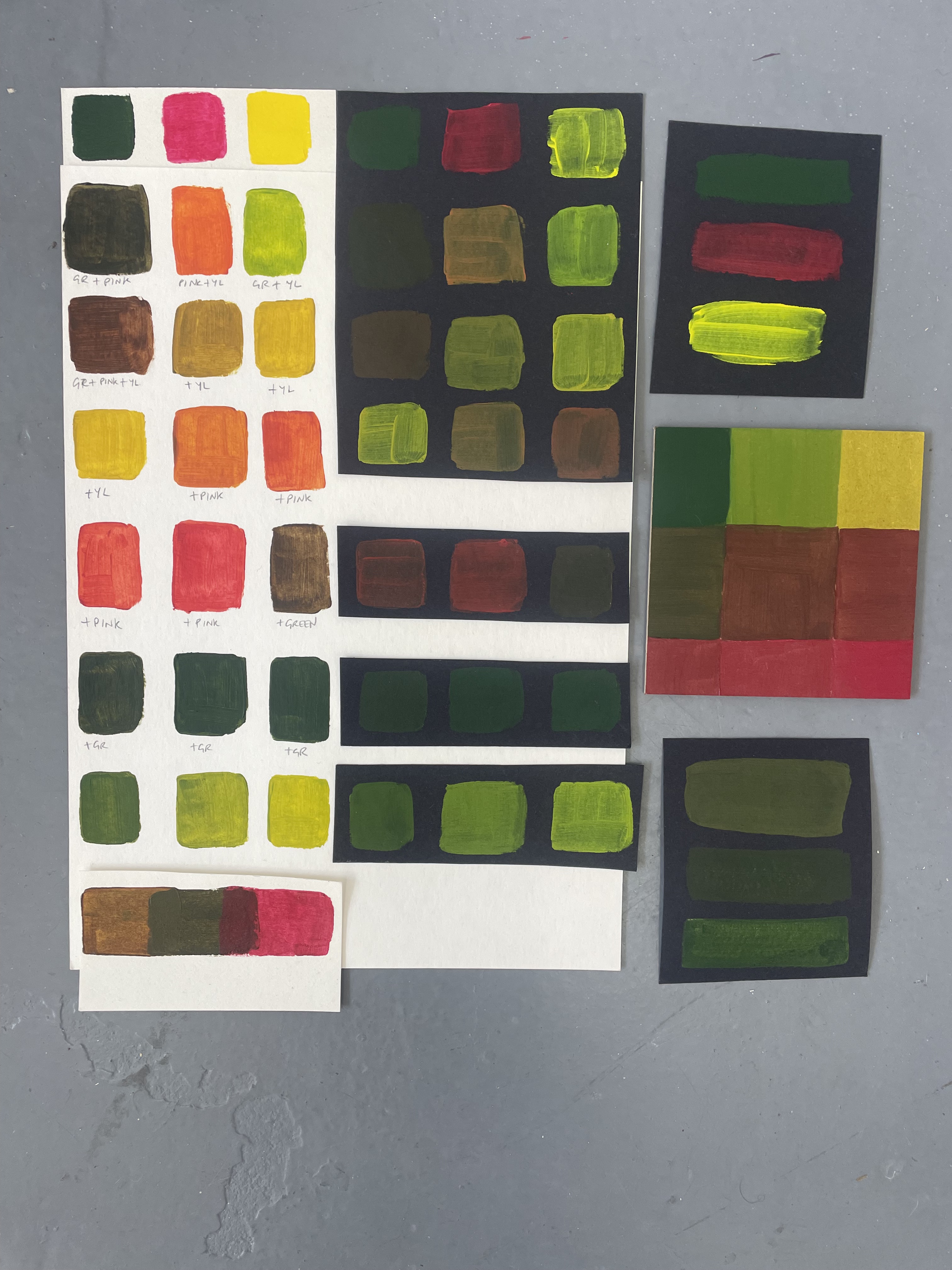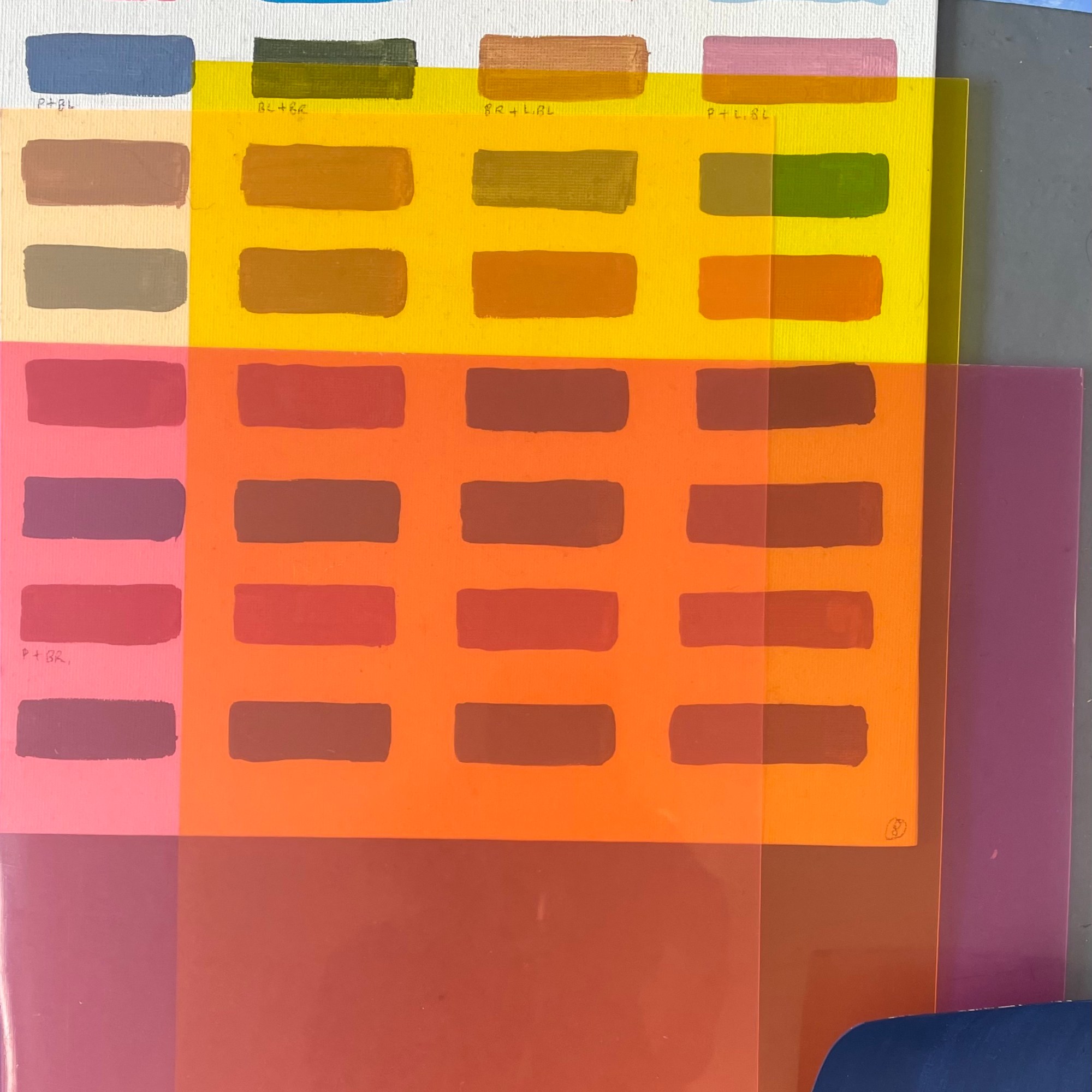 A studio staple in my practice is making colour as exercises that ease me out of a creative block or into exploring a particular palette range for a piece of work or as studies. Creating these swatches under different ‘conditions’, in an altogether different environment (both immediate and wider), with headspace being free to simply explore, was the beginning of creating work over the next few days that I didn’t know I had in me.