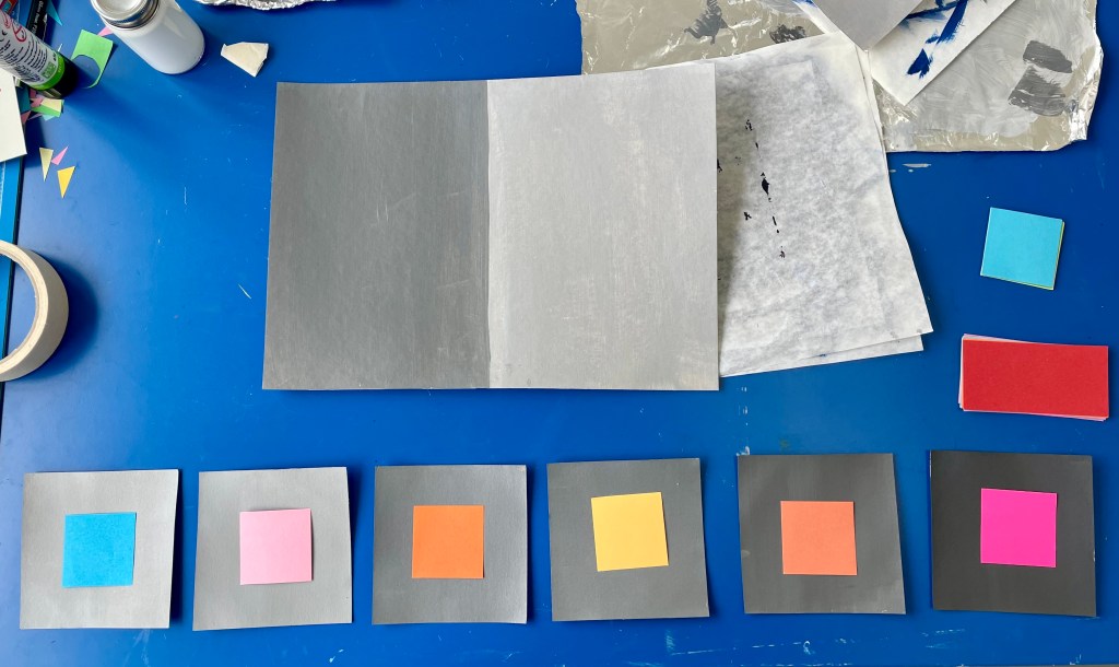 I explored how colours interact, some with grey as a background as shades and colour blocks. These exercises taught me that the studying of limited colour palettes is as important to understanding the mixing of colours, in learning about interactions, colour relationships, symbolism and sensory connection.