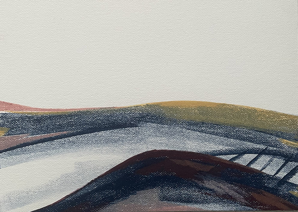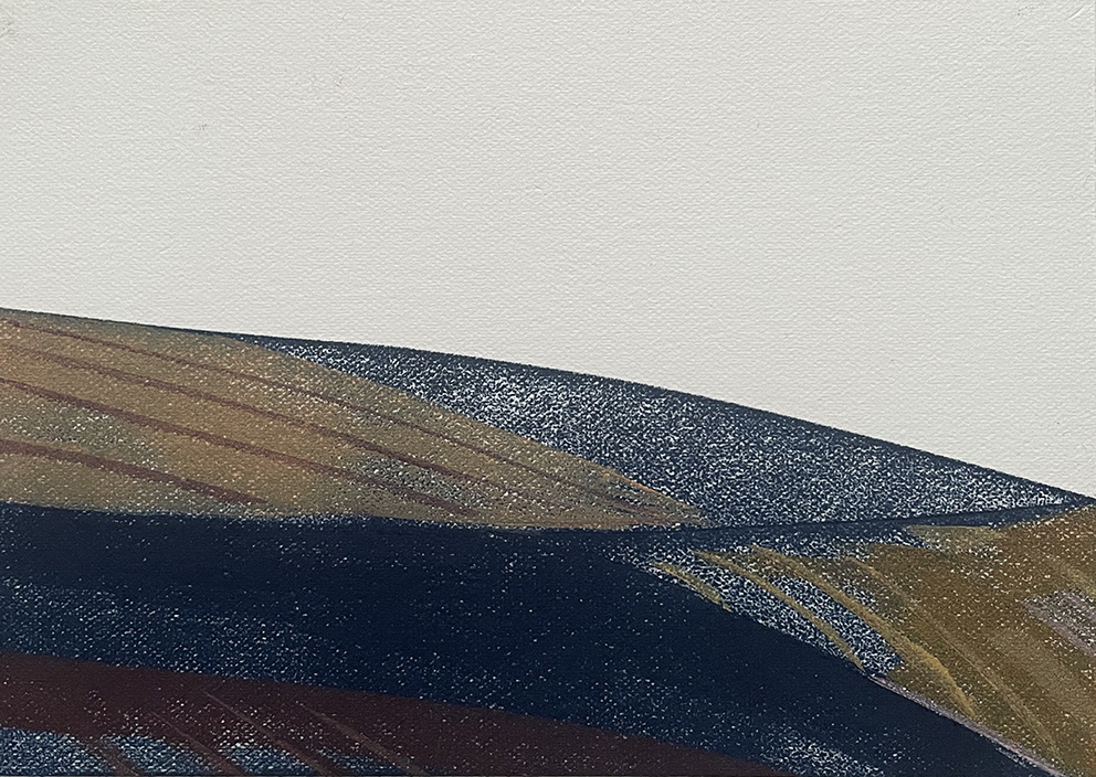 Connection as a concept is the foundation of my years of artist practice, of how landscape, plants and place are in an interconnected cyclical exchange with people. Explored through colour and light play, I find my work organically wanting to evolve from making botanical linocuts to experimenting directly from research material I gather from my sketch-walks. Where colour would take me on an inner-journey, the line would take shape of the outer-journey, emotionally recording my visual responses to being immersed in a particular surrounding at a particular time of the day. Transcribing my paint and sketch studies to print studies is part of the process of visually communicating the emotional language captured within those colours, lines and negative space. In the studio, my inking roller becomes my paintbrush quietly approaching the surface in a painterly technique, creating monoprint studies.