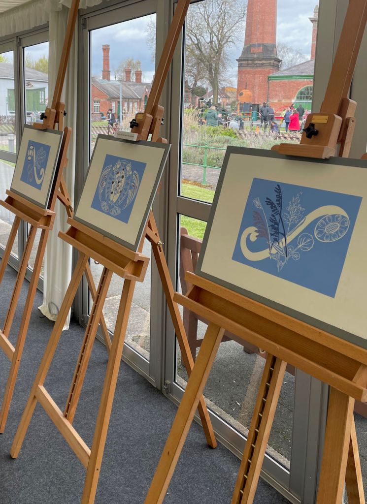 The original A4 linocuts produced were photographed for a digital print upscale to around 1 meter wide and exhibited at Highcross Leicester from Saturday 1st April until Sunday 4th June 2023.